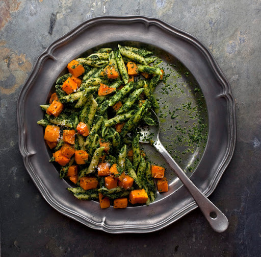 Pasta With Kale Pesto and Roasted Butternut Squash