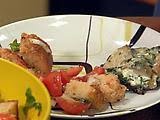 Spinach and Artichoke Stuffed Portabello Mushrooms with Tomato and Bread Salad