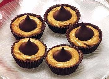 *4*. Spoon peanut butter filling into chocolate cups. Cover; refrigerate before serving. Remove wrappers from chocolate pieces. Before serving, top each cup with chocolate piece.