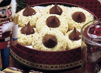 *2*. Remove wrappers from chocolate pieces. Heat oven to 350°F. Shape dough into 1-inch balls; roll in ground nuts. Place on ungreased cookie sheet.