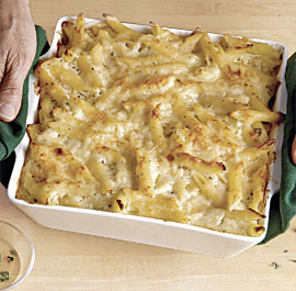 Cauliflower and cheese are a classic combination, and here they come together in a sophisticated take on macaroni and cheese. The cauliflower adds flavor and beneficial nutrients, and it lightens up the calorie count of each portion.