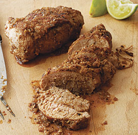 Pernil is a brightly flavored roast pork dish from the Caribbean. This version uses quick-cooking tenderloin in place of the more traditional pork shoulder, but it has the same robust flavorings, including garlic, cumin, oregano, vinegar, and lime.