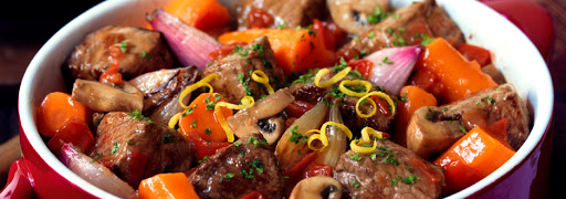 Stir in potatoes, mushrooms and carrots. Simmer, covered, until beef and vegetables are fork-tender – about 40 minutes. Sprinkle with parsley and lemon zest just before serving.