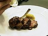 Pour the juices from the lamb into the bowl containing the shallots and vinegar. Season with salt and pepper. While constantly whisking, slowly pour in 1/4 cup of olive oil. To present, arrange the potatoes on plate, slightly off center. Use vegetables of your choice and place next to potatoes. Slice lamb into 4 equal-sized pieces. Fan the pieces using the bone for height in presentation. Drizzle with vinaigrette.