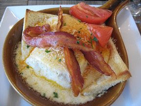 Remove from broiler, cross two pieces of bacon on top, and serve immediately.