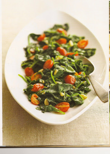 Heat oil in a nonstick skillet over medium-high. Add garlic, cook 30 seconds. Stir in tomatoes; cook until they soften, 2-3 minutes. Add spinach, pushing leaves down tint the skillet. Toss spinach with tongs until it wilts. Season spinach with salt.