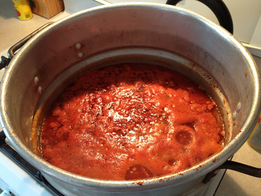10. Let your sauce simmer on low heat for the next 3 hours. During this time you will have fats rise to the top. You can skim most of the fat off if you choose. I stir it all back in for this is where a lot of your flavor comes from.