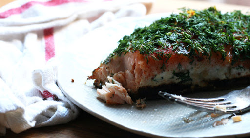 Don’t be deterred by the word slow. This recipe is not some sluggish affair (you won’t need that countertop cooker; you’ll eat dinner before midnight). In fact, our “slow-cooked” salmon is only in the pan for about 25 minutes, and the issue of speed (or lack thereof) refers only to the cooking method. Here, you start with cold oil and a delicious blend of lemon zest, smoked paprika and fresh dill--and end with an incredibly tender fish that’s bursting with explosive flavor. The skin gets crispy, the interior is fully cooked and the surface remains sashimi pink.