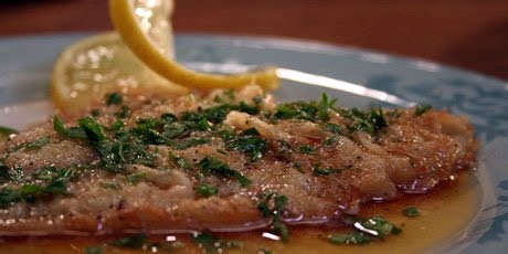2. Brown the butter in the pan. As soon as it’s hot, add the garnish of parsley, and immediately pour it over the fish. Squeeze over lemon juice, and serve right away.