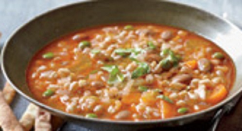Add 1 quart of the water, sweet potato and the beans and bring to a boil. Simmer over low heat for 30 minutes.