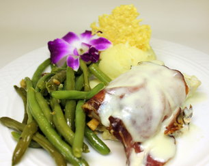 To serve: Set one chicken breast on each serving platter and top with some of the sauce. Serve with glazed green beans in cashew sauce.