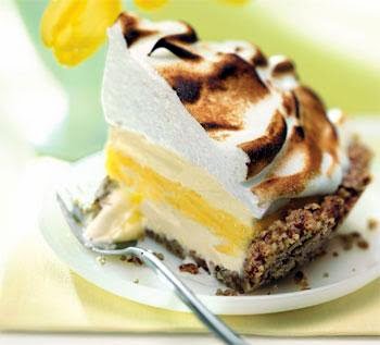 This dessert has it all — a pecan crust is filled with a layer of vanilla ice cream, topped with lemon curd, and then frozen. And the finishing touch? A golden brown crown of meringue.