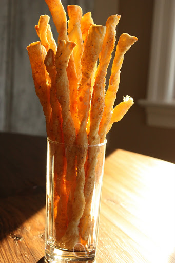 Drag pastry strip through Parmesan cheese on both sides. Twist and place on a large rimmed baking sheet lined with parchment paper.