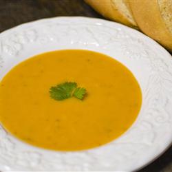 Transfer the soup to a blender, and blend until smooth. Return to pot, and mix in any remaining stock to attain desired consistency. Season with salt and pepper.