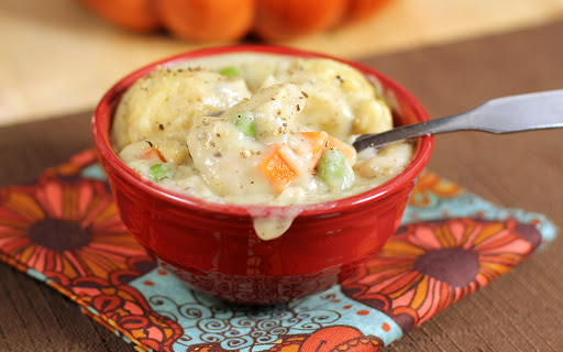 Combine dumpling ingredients in a medium bowl. Mix well with a fork. Remove cover from stew and stir well. Drop dumplings into stew one tablespoon at a time, use a 1 tablespoon scoop to make it even easier. Reduce heat to simmer, cover and cook for 10 minutes. Serve and enjoy!