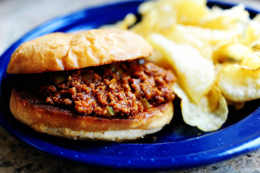 Spread rolls with butter and brown on a griddle or skillet. Spoon meat mixture over the rolls, topping with a slice of cheese if it makes your skirt fly up. Serve hot with kettle cooked chips!