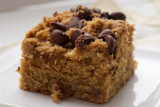 Transfer batter to prepared pan. Sprinkle top with reserved flour mixture and chocolate chips. Bake 35-40 minutes, or until a toothpick inserted into the center comes out clean.