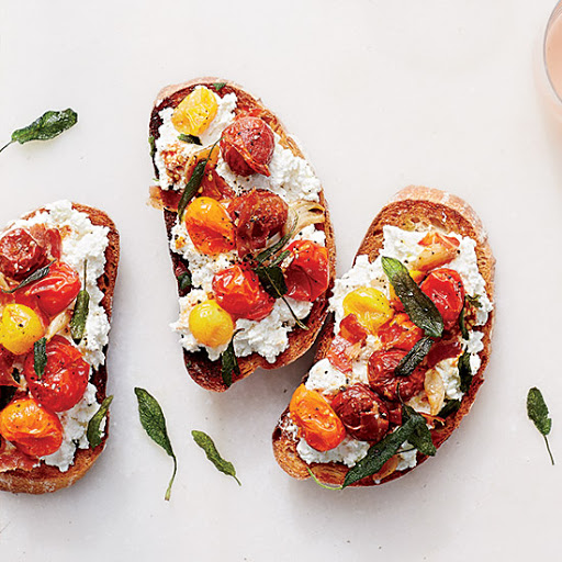 Ricotta and Roasted Tomato Bruschetta with Pancetta