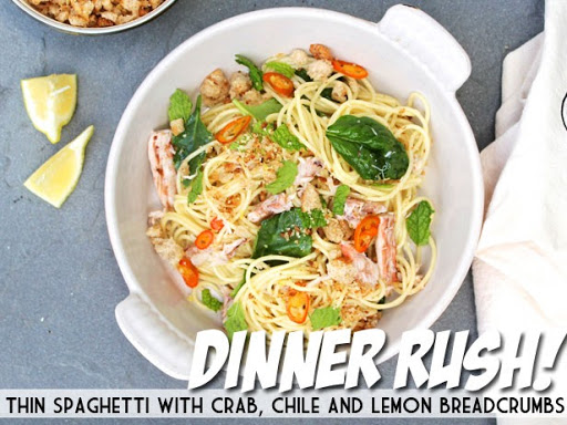Thin Spaghetti with Crab, Chile and Lemon Breadcrumbs