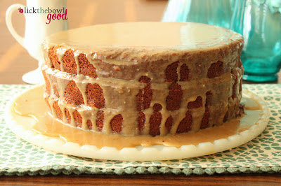 NOTE: The white chocolate didn't really want to melt and seemed rather stiff though it was still warm. Once I added the condensed milk and espresso it all came together. I had a few lumps but strained them out before pouring the glaze over the cake. I had a lot of glaze leftover. Next time, I would just make half a recipe.