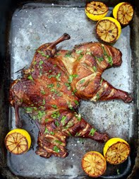 - One 3½-pound chicken, butterflied, thighs and legs scored
