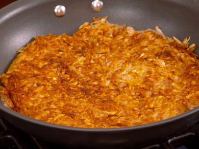 Add half of the butter and half of the oil to the skillet. Let melt, and then add the potatoes, pressing them down with a spatula. Cook until crisp and golden brown on one side, 5 to 7 minutes.