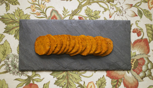 When ready to bake, line a large baking sheet with parchment paper. Slice the shortbread log into ¼ inch-thick rounds and arrange on the parchment paper.