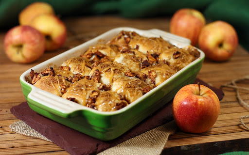 Reserve ¼ cup apple mixture. Add a tablespoon of apple and 6 of the cut caramel pieces. Pull the edges of the dough together to create a ball. If they ball won’t seal, tap your finger tips into the flour and crimp the seal together.