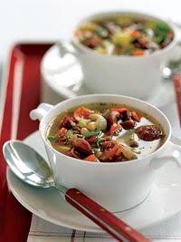 2. Add chicken broth, water, both types of beans, tomatoes (with their juice), potato, carrot and oregano. Cover and bring to a boil. Remove the cover and simmer on high for 10 minutes or until vegetables are tender. Stir occasionally. Serve immediately.
