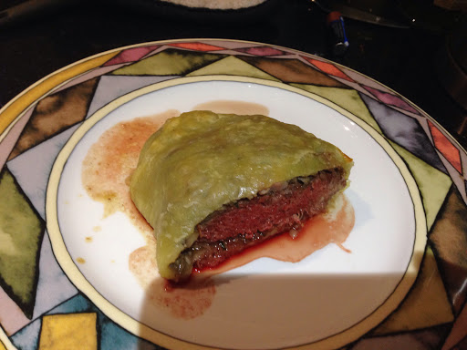 Brush pastry with egg wash (1 egg + 1 T water beaten). Bake 425 for about 20 minutes (use meat Thermometer to 120)