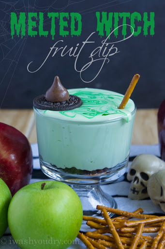 It’s simply green because I took a witch and boiled her down into a deliciously sweet dip that goes well with apples, pretzels, graham crackers, strawberries, etc, etc.