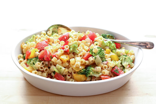Place the drained pasta, broccoli, cucumber, bell peppers, onion, tomatoes, and marinade liquid in a large bowl. Toss well to coat thoroughly. Sprinkle with salt and pepper, stir again and taste. Adjust seasonings as needed. Cover and refrigerate until ready to eat. Stir again before serving. Enjoy!