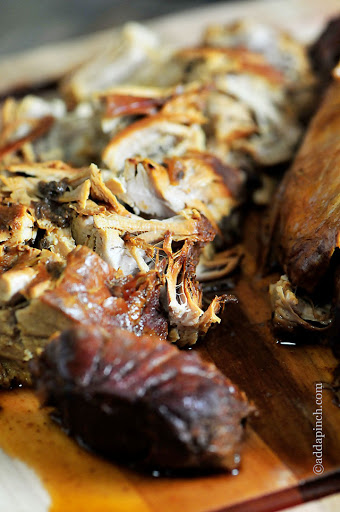 Once pork tenderloin has cooked, remove from slow cooker with tongs into a serving dish. Break apart lightly with two forks and then ladle about ¼ – ½ cup of gravy over pork tenderloin.