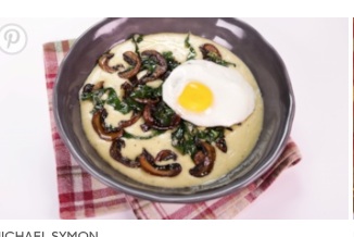 Finish the reserved Polenta with Extra Virgin Olive Oil and spoon Polenta into a serving bowl. Add some of the Mushroom-Greens mixture over the top. Finish dish with a drizzle of Olive Oil. (Optional: Top with a Fried Egg.)