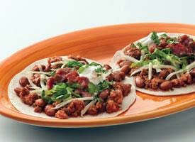 1 Serving (2 Tostadas): Calories 490 (Calories from Fat 160); Total Fat 18g (Saturated Fat 7g, Trans Fat 1 1/2g); Cholesterol 80mg; Sodium 1970mg; Total Carbohydrate 48g (Dietary Fiber 5g, Sugars 5g); Protein 34g Percent Daily Value*: Vitamin A 40%; Vitamin C 15%; Calcium 30%; Iron 25% Exchanges: 2 1/2 Starch; 1/2 Other Carbohydrate; 0 Vegetable; 3 1/2 Medium-Fat Meat Carbohydrate Choices: 3