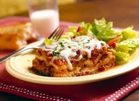 5. Sprinkle top of lasagna with remaining 1 cup mozzarella cheese. Cover and let stand about 10 minutes or until cheese is melted. Cut into pieces.