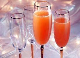 2. Pour 1/3 cup into each of 8 tall glasses; add about 1 cup champagne to each. Garnish with orange slice.