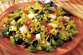 Toss all salad ingredients in a large bowl. In separate bowl, mix dressing ingredients. Pour dressing over mixture and toss again. Season with salt and pepper to taste.