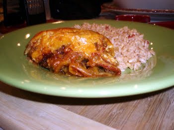 Bake covered at 350F for 30 minutes. Remove cover and bake for an additional 15 minutes. Remove from oven and allow to cool for 10 minutes before serving.