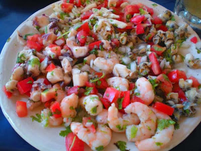 Al pescado o camarón ya picado en pedazos chicos, se le agrega la sal, pimienta y el limón y se deja 30 minutos en el refrigerador. Se saca y se le quita la mitad del jugo de limón. Se le agregan todas las verduras empezando por la cebolla, tomate, los chiles y su jugo con el pepino y un poco de orégano molido, se le agrega el clamato, si le falta limón agregar del que se le quito y por ultimo el cilantro si les gusta, i le hace falta se le agrega un poco más.