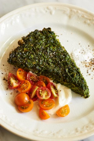 Remove from skillet and serve with a cool dollop of yogurt and sliced cherry tomatoes.