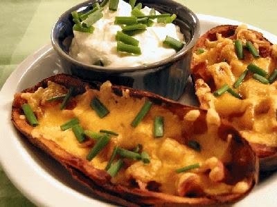 7. Place the potatoes in a 350-degree oven for 5-10 minutes, or until the cheese has melted.