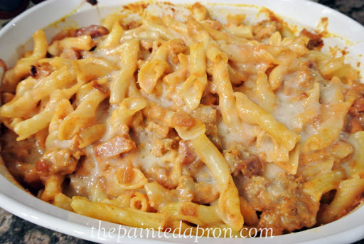 Pour sauce over pasta and meat in casserole and gently toss to combine.
