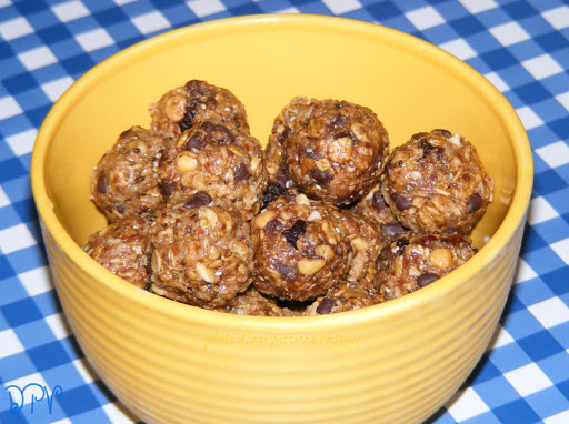 ((NOTE--If the mixture seems a bit too dry then add a little more honey or peanut butter, if it gets too gooey then add more oats or any of the other dry ingredients. If desired, the finished balls can be rolled in finely ground nuts, milled flax seed, or ground coconut.))