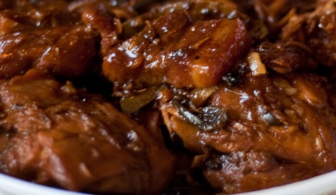 In a heated pot, add marinaded ingredients and cook for a few minutes.