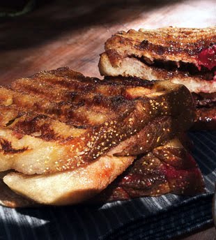 •Grill each sandwich until chocolate melts and bread is golden, about 3 minutes per side. Transfer to work surface; cool 5 minutes. Using serrated knife, cut each sandwich in half. Transfer to plates.