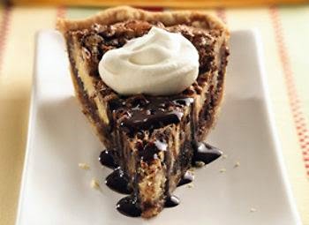 *2*. In small bowl, beat topping ingredients on medium speed just until blended. Carefully pour topping over pecans and chocolate chips. Cover crust edge with 2— to 3-inch-wide strips of foil to prevent excessive browning; remove foil during last 15 minutes of bake time.