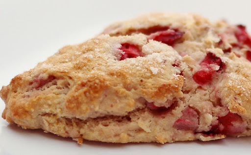 I chose this recipe from Annie's Eats because I had all of the ingredients on hand. They were very yummy and she gave some good advice about only baking a few at a time since the strawberries tend to make the scones soggy after a few hours. She said to shape all the dough into the scone shapes and freeze what you don't cook immediately. When you are ready to cook them, you can cook them frozen, but will need to add 5 to 8 minutes to the cooking time. I did this and they turned out just fine.