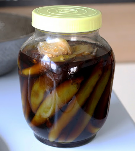 24 hours later open the jar, take out the pebbles, and pour the brine out of the jar into a pot.