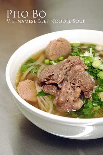 6. Line up 4 large bowls on counter. Distribute the noodles, beef balls and thin steak slices evenly amongst the bowls. Ladle the hot Pho stock into each bowl. The hot stock should cook the thin steak slices. Serve with lime wedges, fresh herbs, chili peppers, Hoisin sauce and Sriracha hot chili sauce at the table.